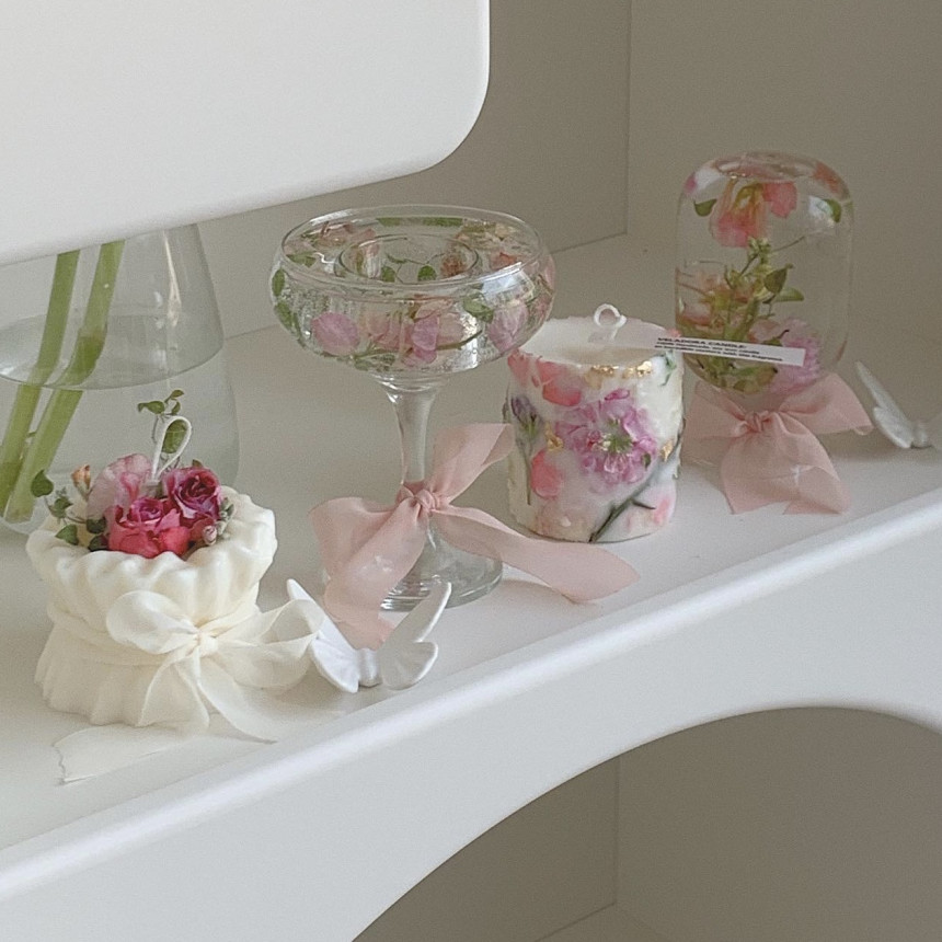 캔들왁스 뿐만아니라, 파라핀, 레진 등을 사용하여 다양한 느낌으로 제작이 가능합니다 :)